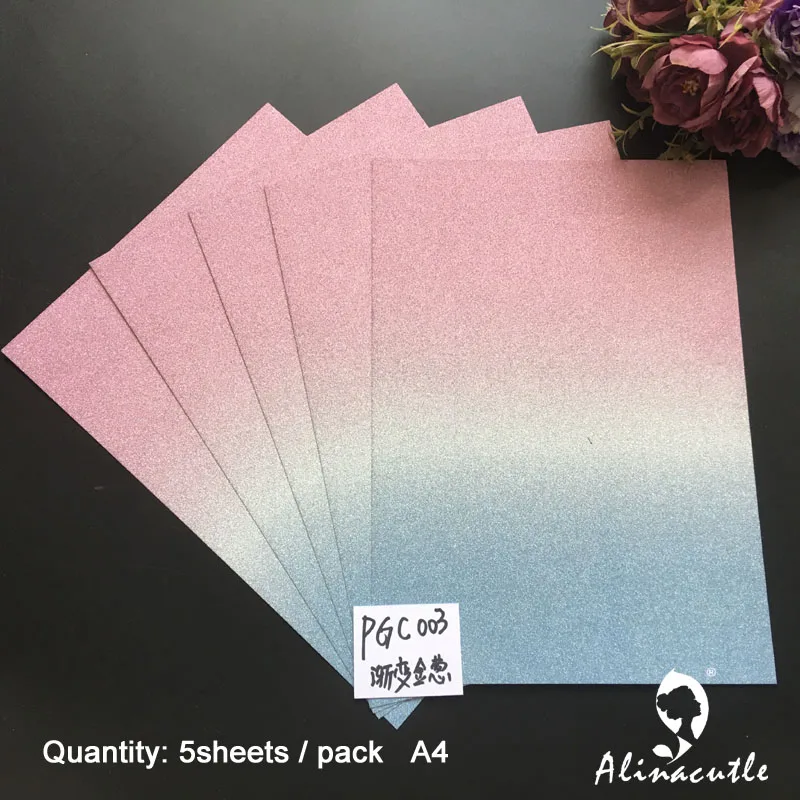 5pc Cardstock Paper Card Stock Premium Ombre Glitter Card A4