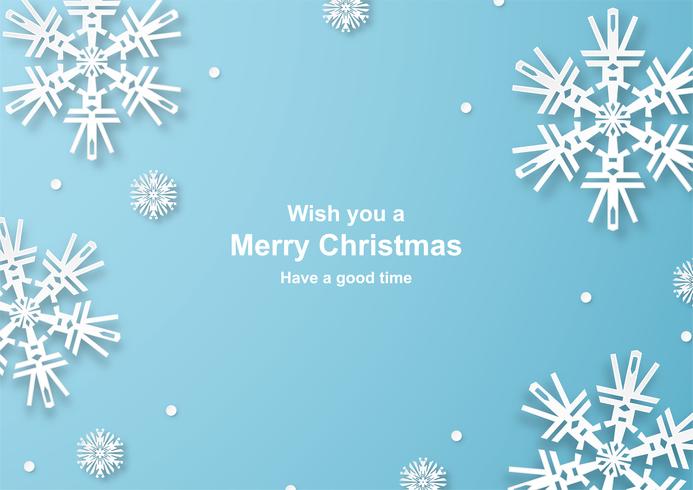 Christmas Decoration On Blue Background In Paper Cut And Craft