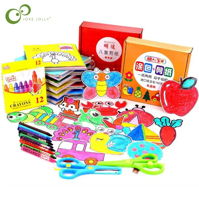 192pcs Set Kids Cartoon Color Paper Folding And Cutting Toys