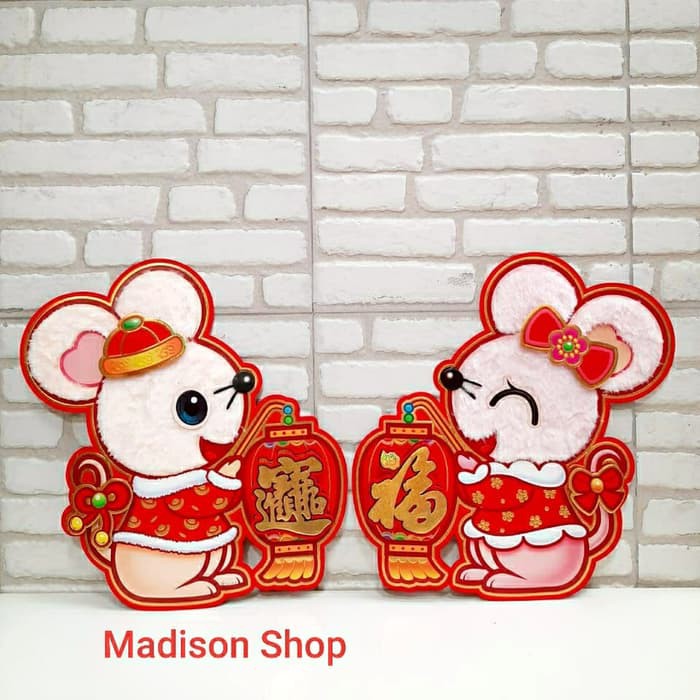 Msd15 Tempelan Tikus Bulu Sepasang L Hiasan Parcel Imlek Dekorasi