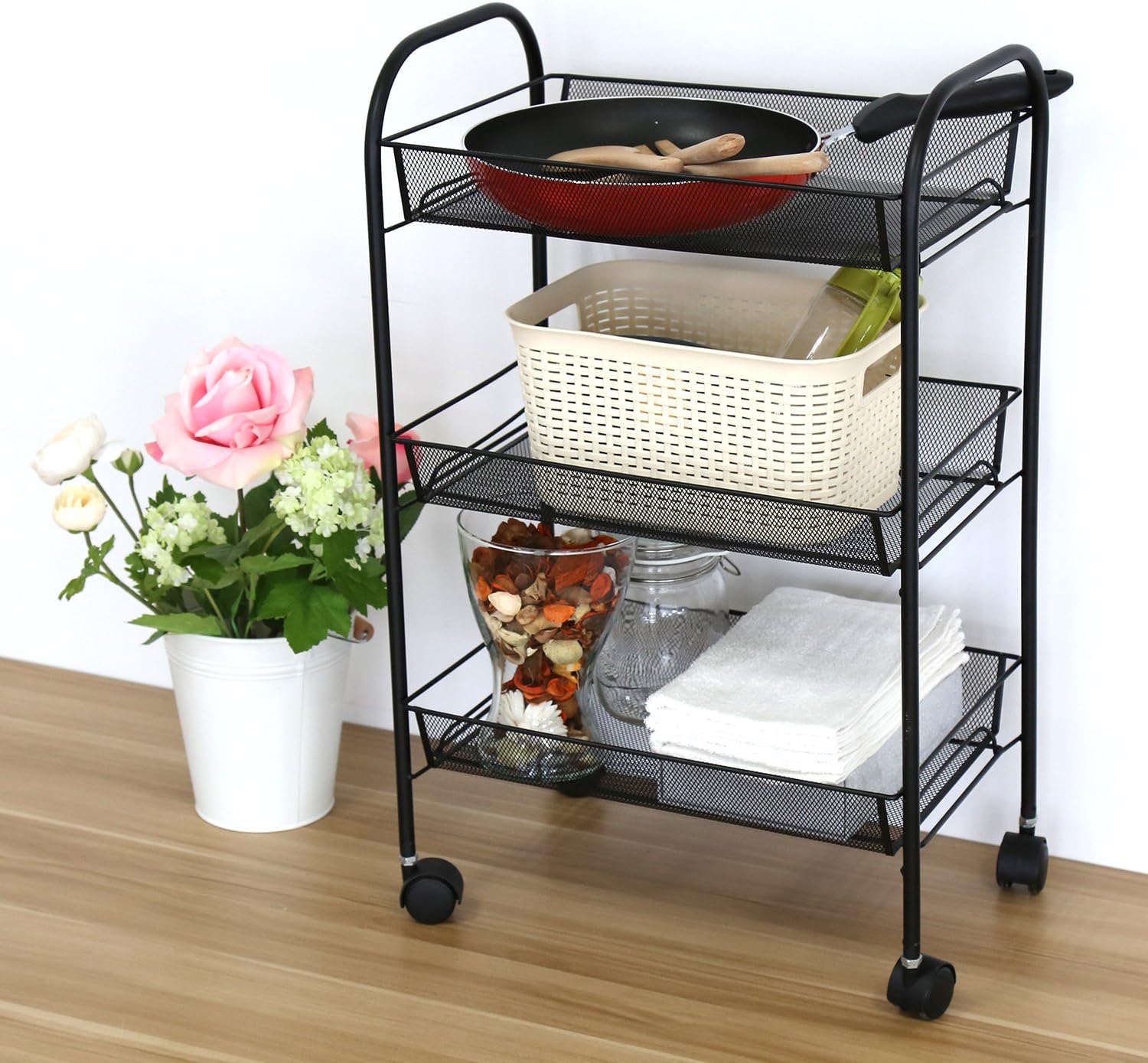 Amazon Com 3 Tier Metal Mesh Rolling Storage Cart With Baskets