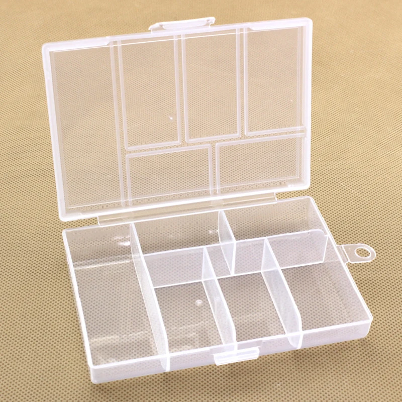 2pcs Plastic 6 Compartment Clear Jewelry Storage Box Small Case