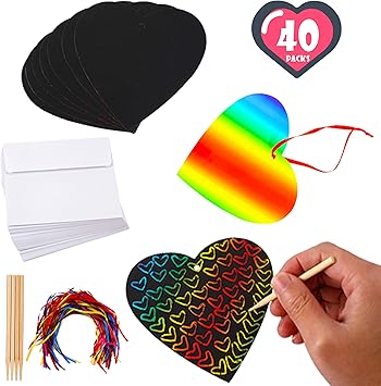 Amazon Com Figoal 40 Pack Cards Valentines Heart Shaped Scratch