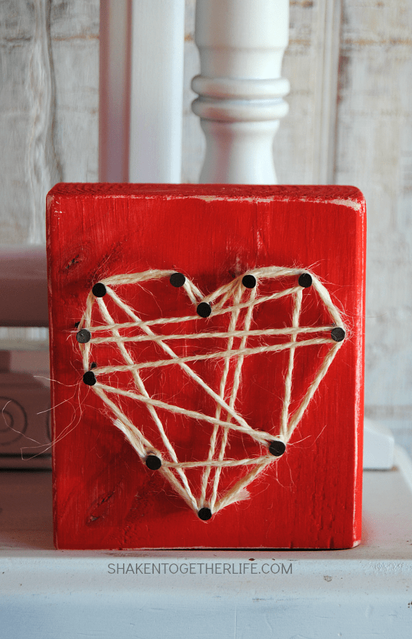 You can find wood heart cut outs and thick woven thread at nearly any craft store. Hearts are the most popular valentines day motif so valentines heart crafts are in great supply. Heart done in wood and paint.