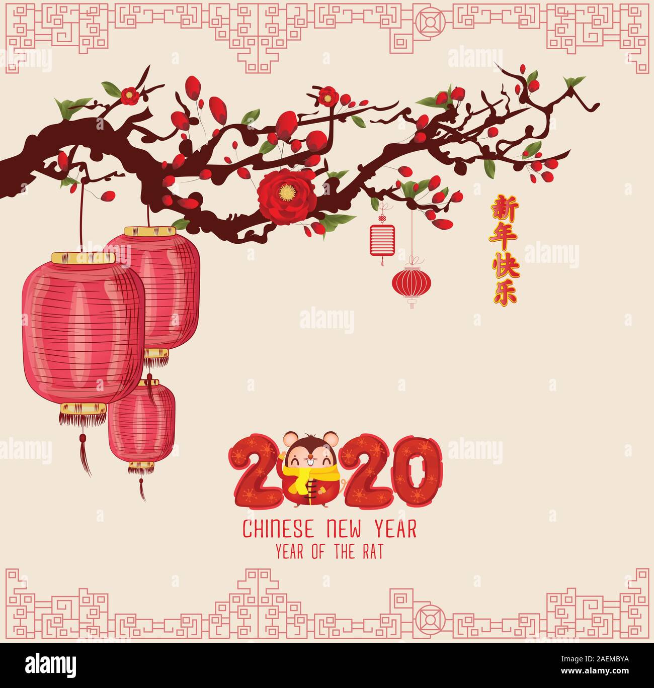 Happy Chinese New Year 2020 Year Of The Rat Lantern And Cherry