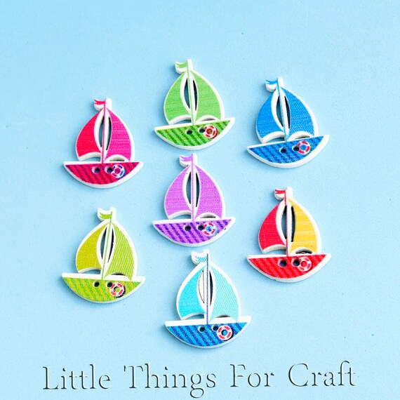 Wooden Ship Boat Shaped Craft Kids Buttons Embellishment Bulk Etsy