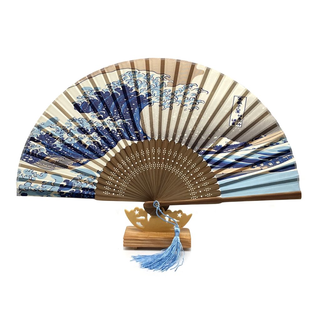 Japanese Real Silk Fan Mount Fuji Kanagawa Waves Bamboo Elegant