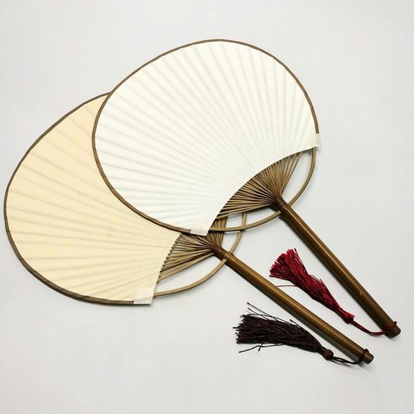 Japanese Style White Paddle Paper Hand Fan With Tassels Party