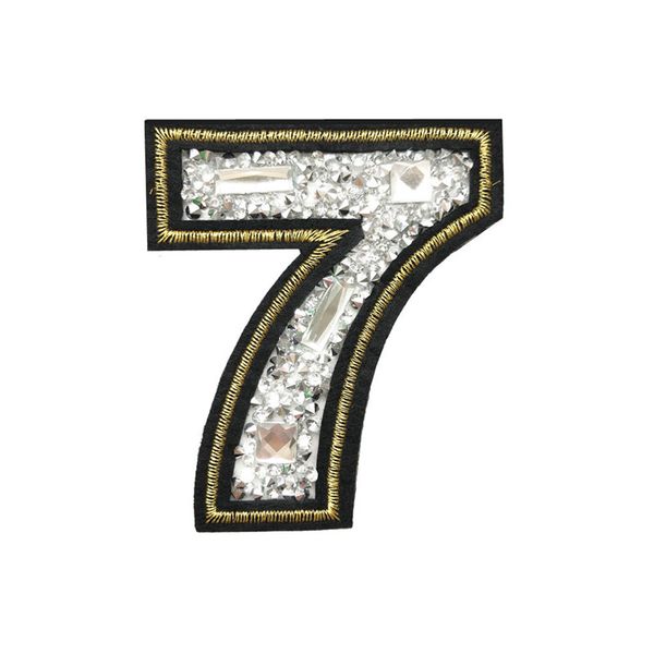 2019 8cm Embroidered Sew Iron On Patch Seven 7 Rhinestone Arabic