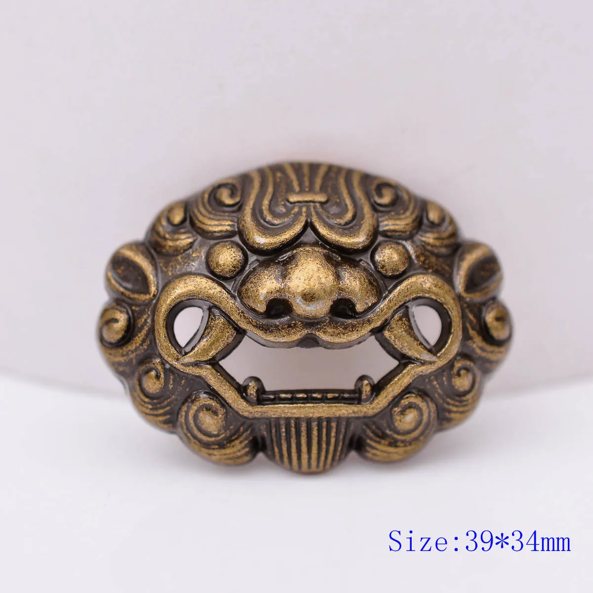 6pc 39x34mm Brass Chinese Lion Dragon Head Conchos Screw Back