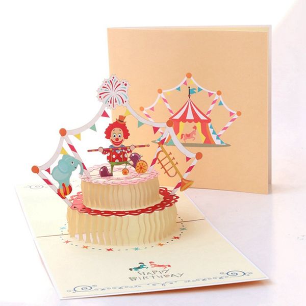 Birthday 3d Greeting Card Clown Cake 3d Handmade Paper Carving