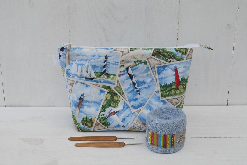 Sailboats Wedge Bag Crochet Project Bag Zippered Notions Pouch Etsy