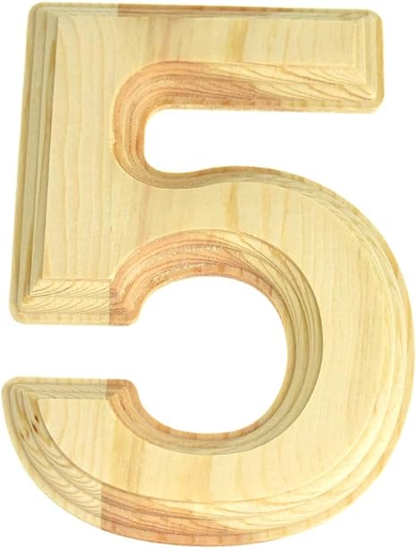 Homeford Pine Wood Beveled Wooden Number 5 Natural 6 Inch