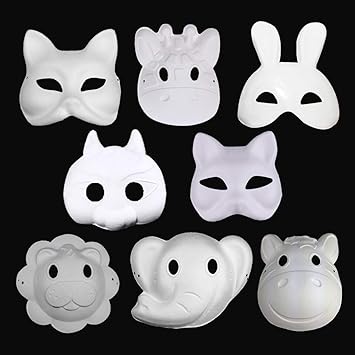 Coxeer 8pcs White Mask Craft Mask Diy Unpainted Animals Party Mask
