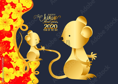 Happy Chinese New Year 2020 Rat Zodiac Signflower And Asian