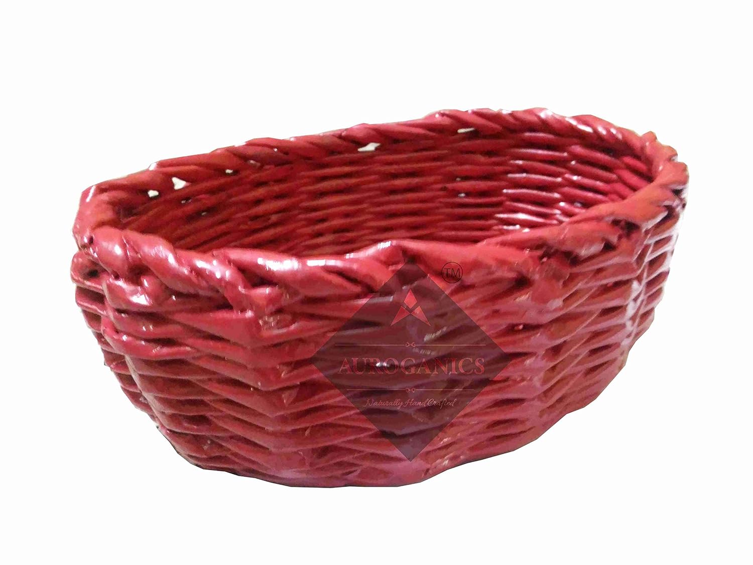 Auroganics Handmade Medium Red Oval Basket Upcycled Recycled