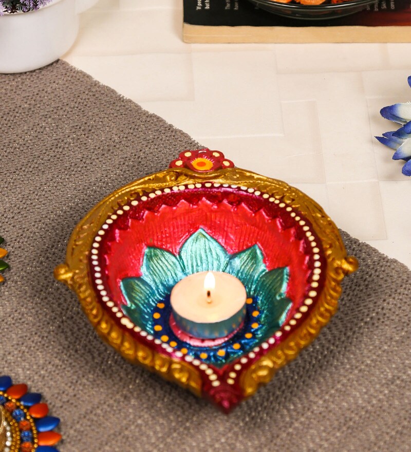 Buy Multicolor Terracotta Decorative Diwali Diya By Craft Art