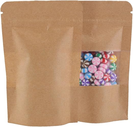 Amazon Com 100x Brown Craft Zip Lock Stand Up Pouches W Window