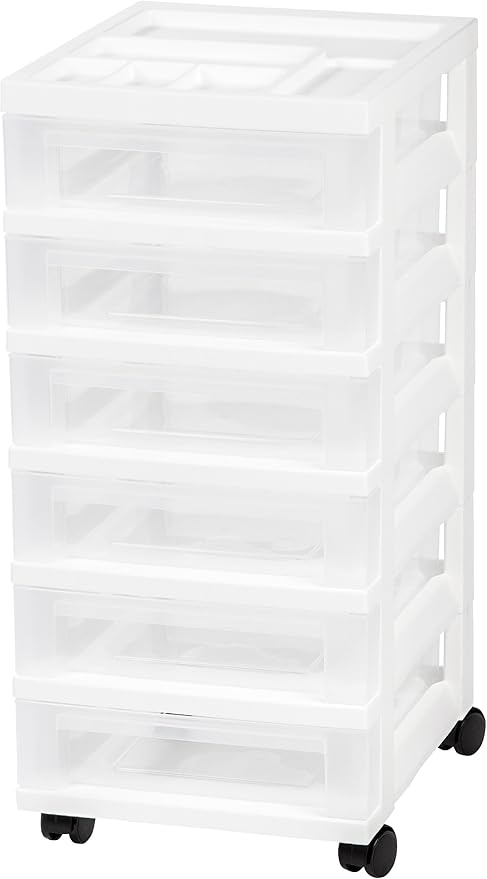 Amazon Com Iris 6 Drawer Rolling Storage Cart With Organizer Top