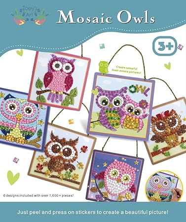 Amazon Com Mosaic Owls Art And Craft Sticky Mosaic Kit For Kids