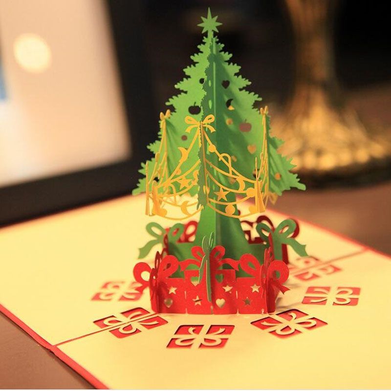 Creative Foldable Greeting 3d Laser Cut Pop Up Paper Craft Xmas